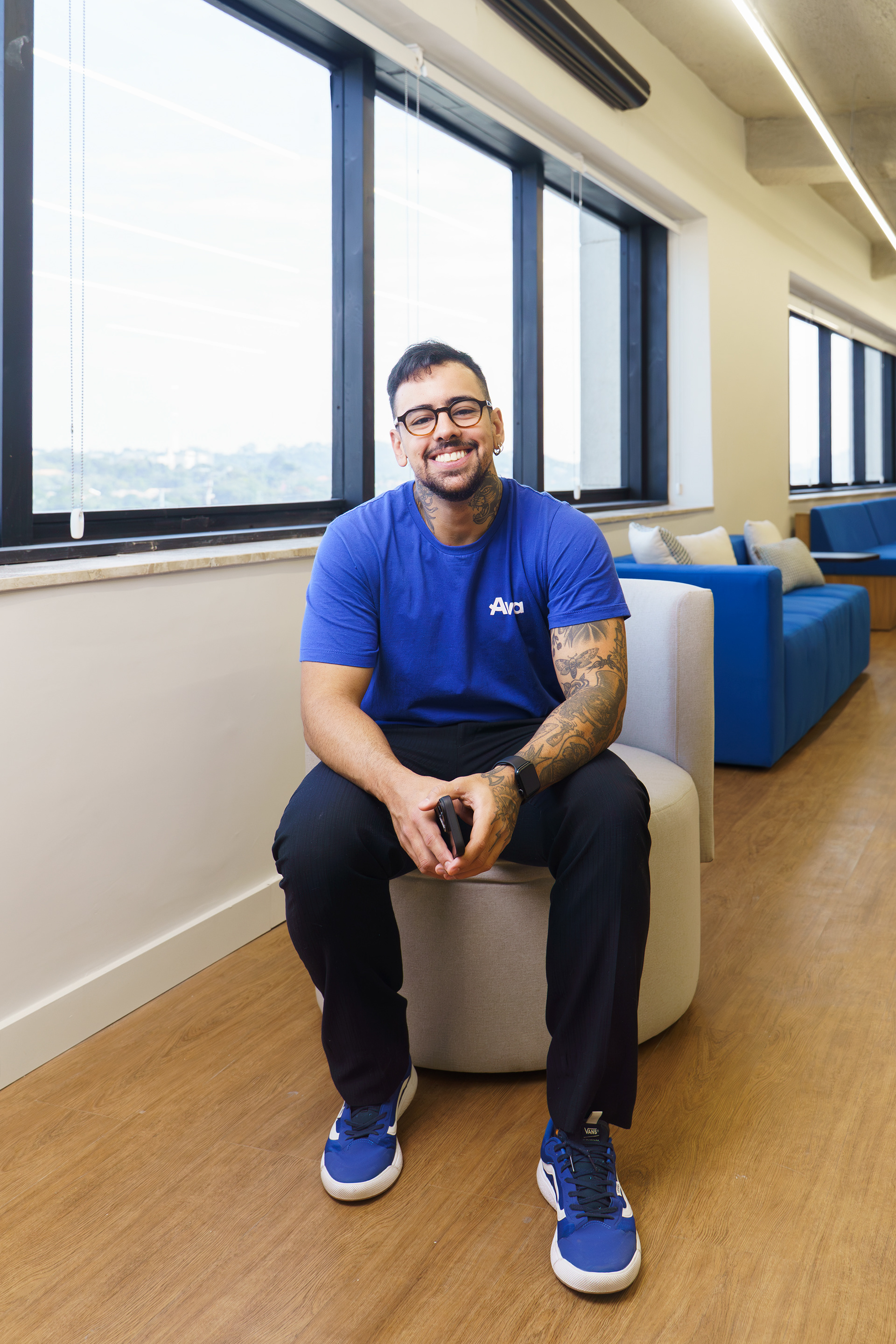 Nesse projeto, atuei como especialista em gestão de marca e fotógrafo. Para resolver o desafio, criei uma linguagem visual sólida, mas descomplicada, utilizando o novo escritório como um elemento vivo da cultura da empresa.