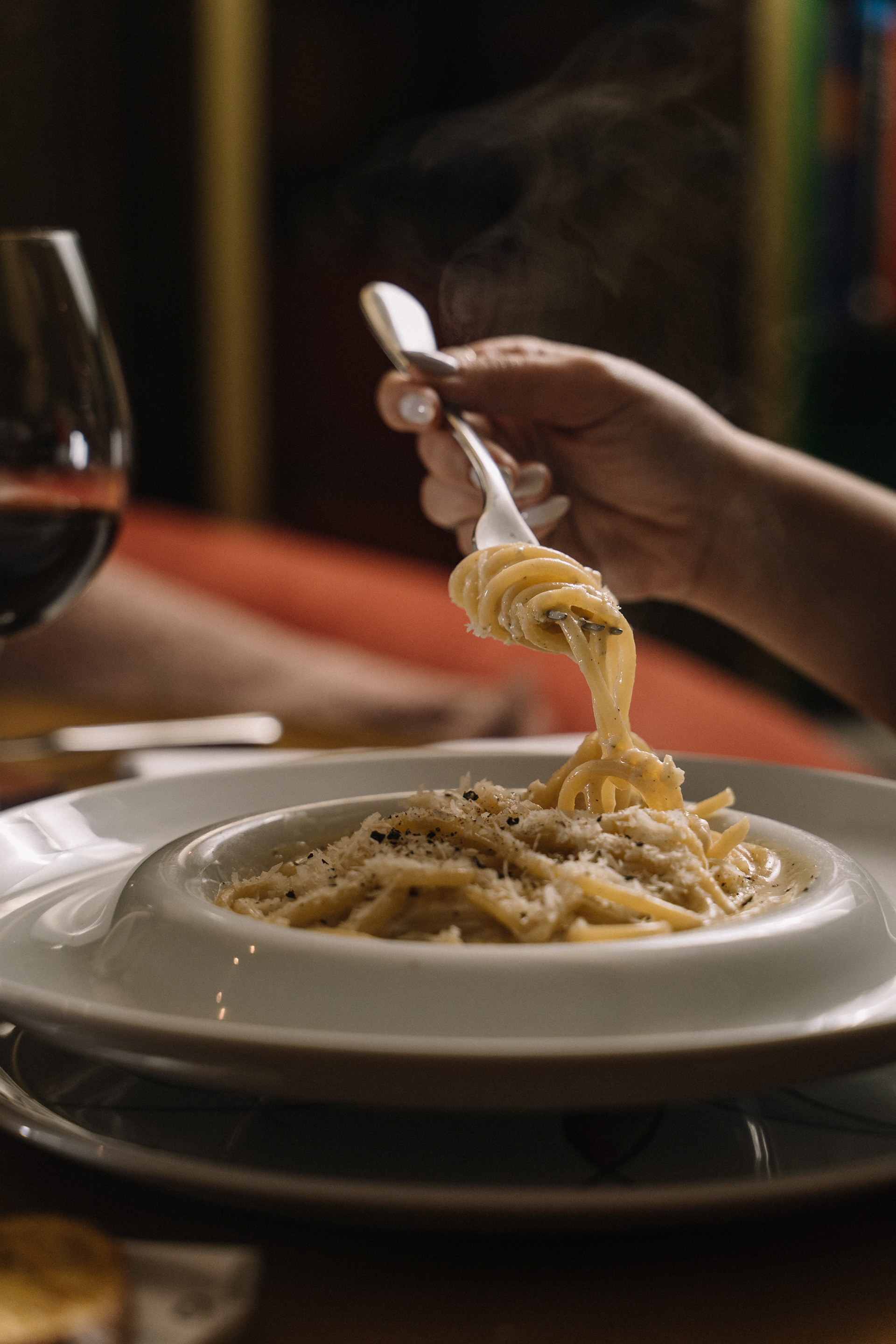 A missão era traduzir visualmente o conceito de cozinha italiana híbrida, que reascende as raízes, mas que se alimenta de modernidade. Precisávamos criar uma identidade imagética que comunicasse, simultaneamente, o calor da mesa que compartilha comida e histórias e a sofisticação de uma experiência gastronômica de alto padrão.